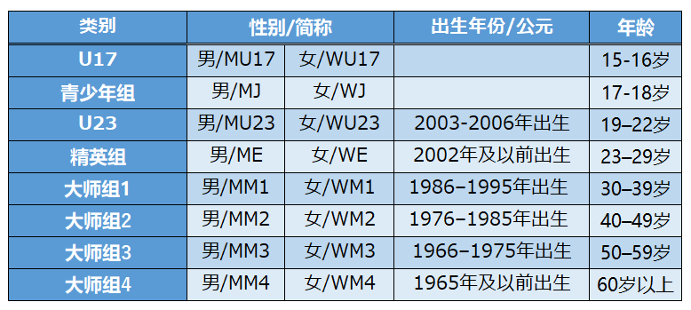 ※若大师组各类别参赛人数超过100人,可能会再细分。
